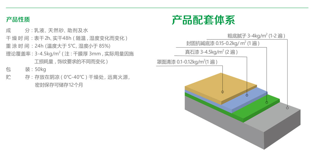 天然真石漆是由環(huán)保型高分子乳液聚合物和能構(gòu)成仿石材紋理的天然大理石骨料、助劑等材料組成的厚質(zhì)涂料 , 其外觀如石頭一般自然、穩(wěn)重、氣派并且附著牢固 , 具有優(yōu)異的耐候性、憎水透氣性、柔韌性和抗沖擊性 , 符合國家規(guī)定的 JG/T24《合成樹脂乳液砂壁狀涂料》標(biāo)準(zhǔn)。其裝飾性具有很強(qiáng)的仿石材及歐式風(fēng)格效果 , 是當(dāng)今社會高檔小區(qū)、別墅、公共建筑的主流裝飾材料。適用于所有平整的建筑物內(nèi)、外墻礦物質(zhì)材料基層 ,同時(shí)也是外墻外保溫體系理想的面層裝飾材料。
